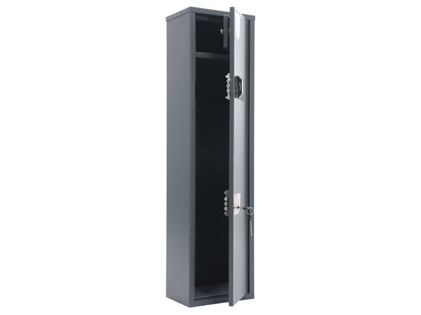 Предназначен для хранения огнестрельного оружия. Комплектуются электронным замком PLS-3.2 (ПРОМЕТ) + аварийный мастер-ключ Предусмотрена возможность анкерного крепления к полу и стене Комплектуется « ложементом на 1 ствол ». Материал ИЗОПОЛ. С клеевым слоем для крепления к стенке Максимальная высота ствола - 830 мм