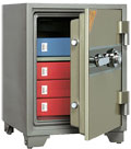 предназначены для сохранности документов и ценностей при пожаре   огнестойкость: класс 60Б (РСБ-С)   при заливке двери и корпуса сейфа используется запатентованный состав огнестойкого бетона   тепловой замок, усиленный огнестойким уплотнителем   оборудованы колесами   комплектуются кодовым механическим замком (без смены кода) + ключевой замок   предусмотрено анкерное крепление к полу (испытание на огнестойкость проведено с анкерным отверстием)